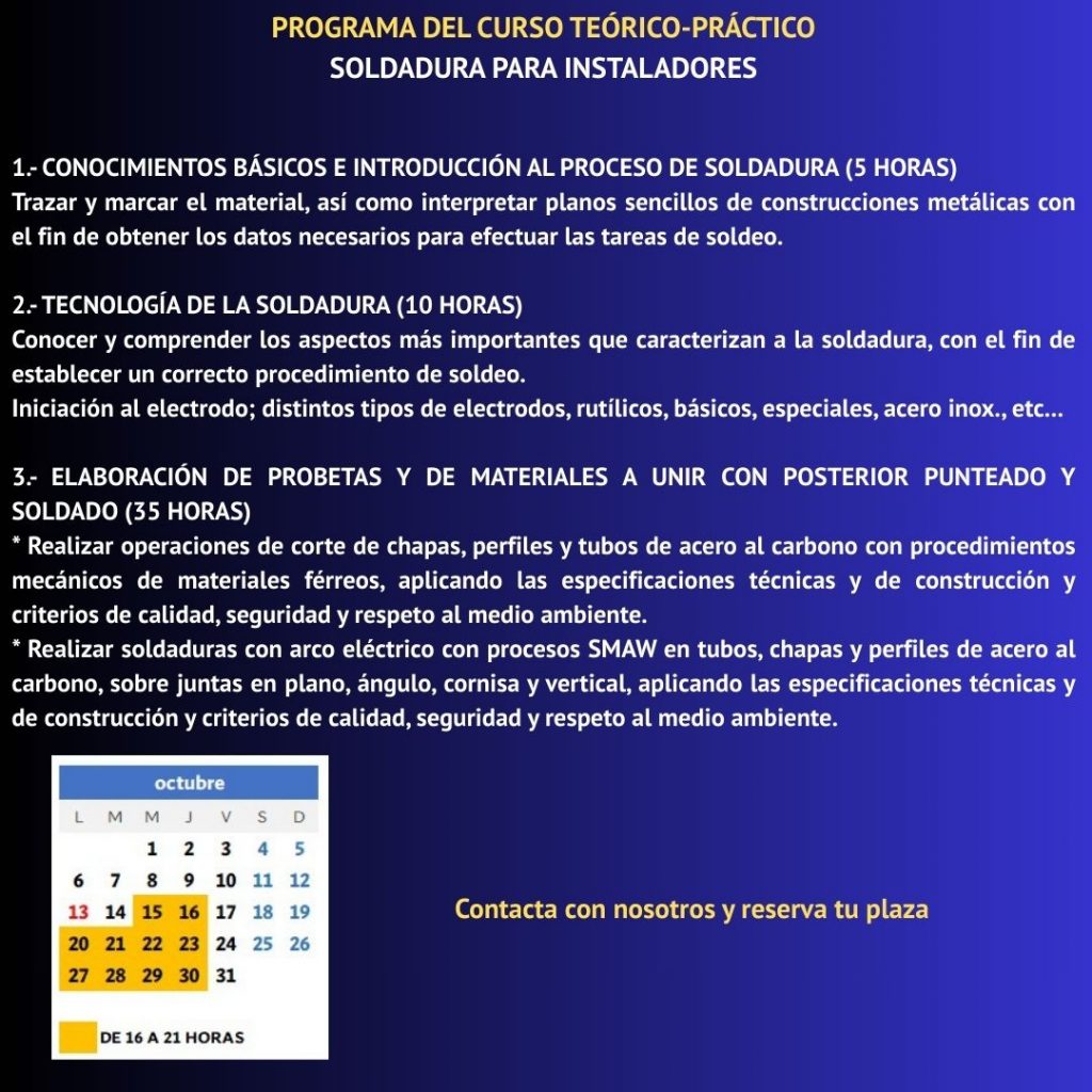 CURSO DE SOLDADURA CON ELECTRODO REVESTIDO PARA INSTALADORES